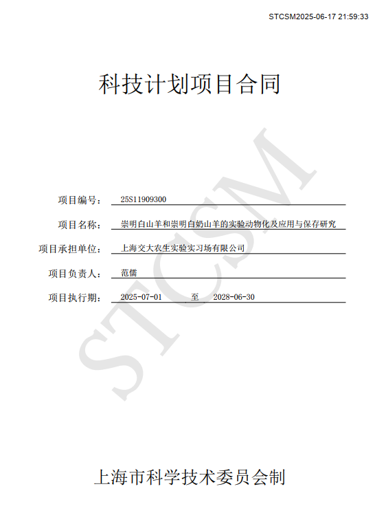今年3月份,上海市科学技术委员会发布了上海市2025年度科技产业高质量发展计划“生物医药创新发展”项目申报指南的通知。针对指南中“专题五、实验动物研发方向,1、实验动物资源开发、应用及保存研究”,农场公司立足企业实验动物主业与未来发展规划,联合相关科研机构和校内院系,以“崇明白山羊和崇明白奶山羊的实验动物化及应用与保存研究”为题进行了申报。