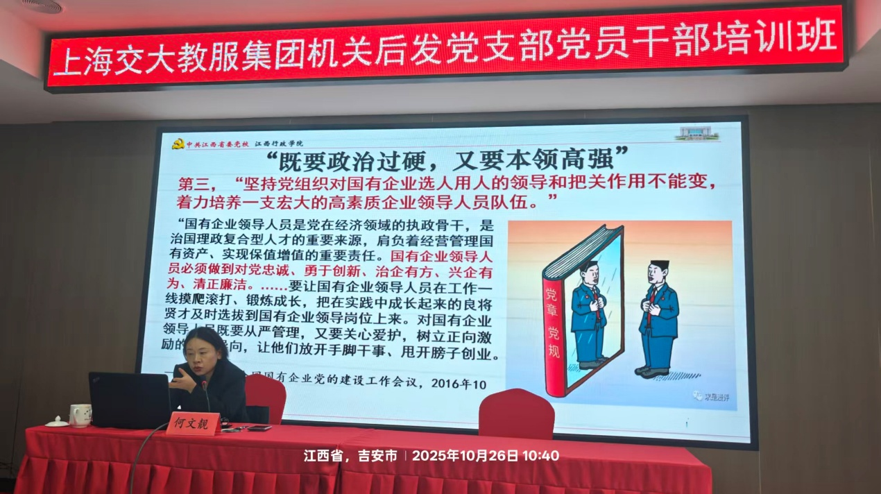 2025年10月25-28日,教服集团机关党支部、后发公司党支部联合组织党员干部赴井冈山江西干部学院,以习近平新时代中国特色社会主义思想为指导,通过专题教学、现场教学、访谈教学、情景教学、体验式教学等形式,学习弘扬井冈山精神,提升党员队伍的党性修养与履职能力,强化使命担当,推动企业高质量发展。