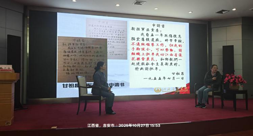 紧接着是一堂生动的访谈教学课,中共中央组织部原副部长曾志的孙子石草龙、开国少将甘祖昌将军的孙女甘红梅,将鲜为人知的故事娓娓道来,老红军后代、井冈山精神传承者的事迹感人肺腑,红色基因在生动的讲述中代代相传。